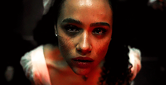walking across a splintering bridge with a raging fire at my back and glowing embers dancing up into the night sky.